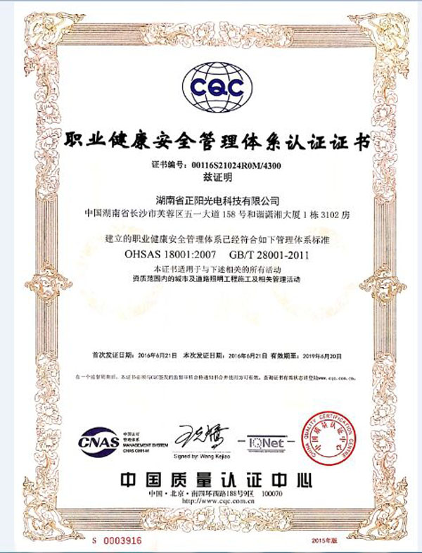 2016年6月27日,我公司順利通過OHSAS18001職業(yè)健康安全管理體系認證