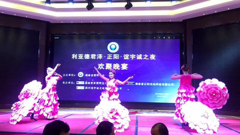 晚上18:30至21:30,承辦單位湖南省正陽(yáng)光電科技有限公司等三家單位聯(lián)合舉辦了隆重的“利亞德?君澤、正陽(yáng)、誼宇誠(chéng)之夜”歡聚晚宴。并各承辦單位代表上臺(tái)致辭。