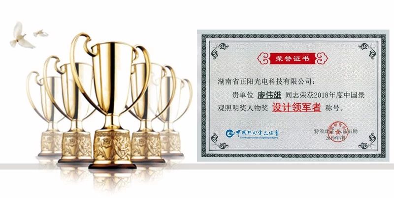 在中國(guó)景觀照明獎(jiǎng)?lì)C獎(jiǎng)典禮環(huán)節(jié),對(duì)2018年度“中國(guó)景觀照明獎(jiǎng)”獲獎(jiǎng)個(gè)人及企業(yè)進(jìn)行表彰頒獎(jiǎng),湖南省正陽(yáng)光電科技有限公司董事長(zhǎng)廖偉雄獲得了2018年度中國(guó)景觀照明獎(jiǎng)人物獎(jiǎng)“設(shè)計(jì)領(lǐng)軍者”稱號(hào)。此次獎(jiǎng)項(xiàng)評(píng)選旨在倡導(dǎo)景觀照明產(chǎn)業(yè)鏈重品質(zhì)、重信譽(yù)、重環(huán)保、重科技創(chuàng)新的理念,引導(dǎo)和促進(jìn)景觀照明產(chǎn)業(yè)健康發(fā)展。